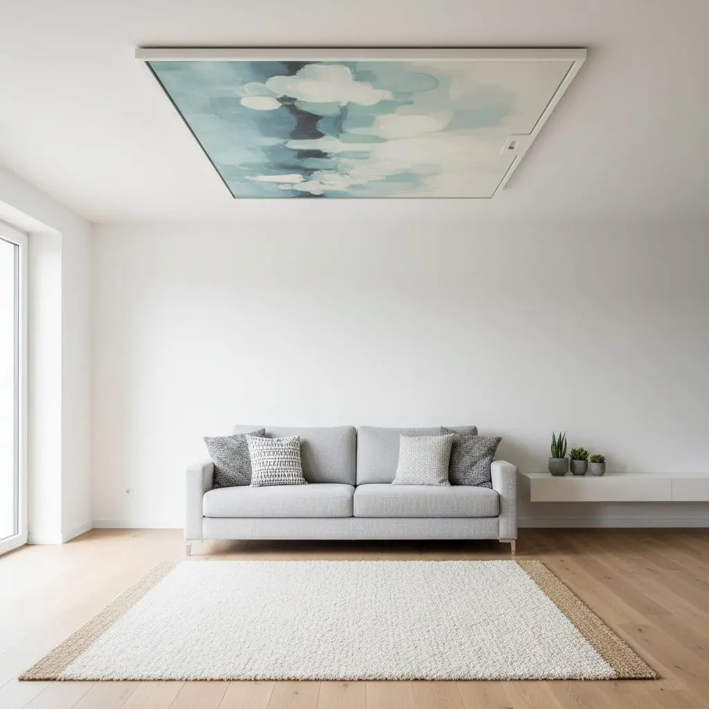 Odpowiednie oświetlenie, takie jak taśmy LED w profilach wpuszczanych lub reflektory punktowe skierowane na inne elementy dekoracyjne, może skutecznie odciągnąć wzrok od włazu. Można również zamontować oprawy oświetleniowe w taki sposób, aby ich linia przebiegała wzdłuż krawędzi włazu, czyniąc go integralną częścią projektu oświetleniowego. Gra świateł i cieni potrafi zdziałać cuda w maskowaniu technicznych detali sufitu.