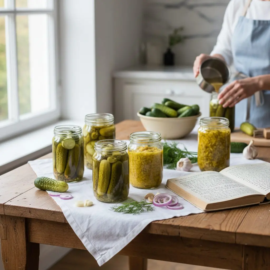 | Ogórki konserwowe | Słodko-kwaśny, korzenny | Ocet, gorczyca, cukier |