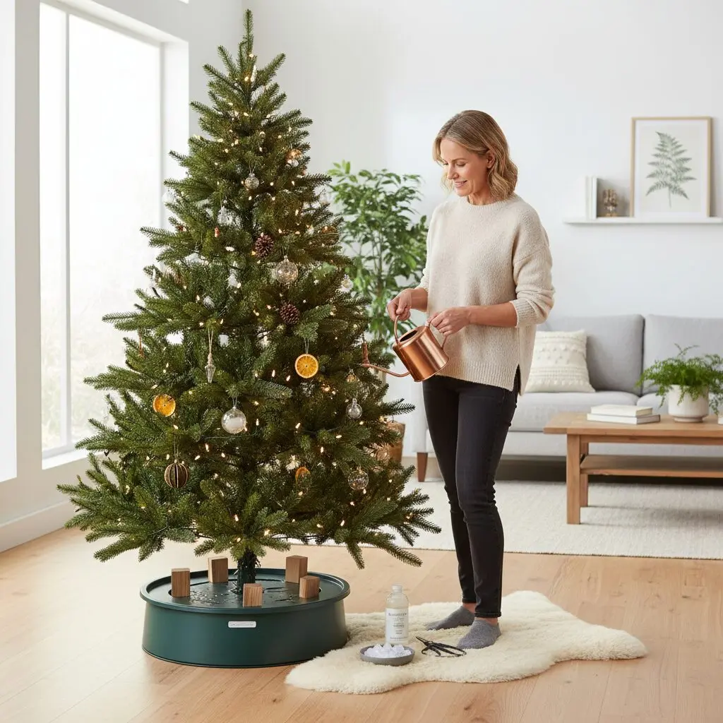 Podlewanie choinki powinno odbywać się codziennie letnią, odstałą wodą — nigdy lodowatą prosto z kranu. W przypadku drzewek ciętych poziom wody w stojaku musi stale zakrywać dół pnia; jeśli pień wyschnie choćby na kilka godzin, żywica zasklepi naczynia i drzewko przestanie pić, co drastycznie skróci jego żywot. Drzewka w doniczkach podlewamy tak, aby ziemia była stale lekko wilgotna, ale nie błotnista, co zapobiegnie gniciu korzeni.