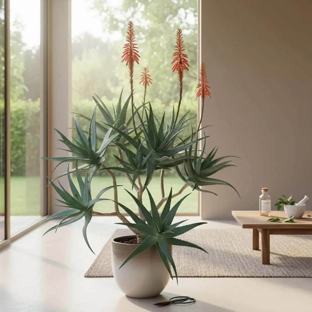 Aloes drzewiasty (Aloe arborescens) to niezwykle odporna i dekoracyjna roślina, która od pokoleń gości na polskich parapetach jako naturalna apteczka domowa. Ten pochodzący z Afryki Południowej sukulent charakteryzuje się krzewiastym pokrojem oraz mięsistymi, szarozielonymi liśćmi zakończonymi delikatnymi kolcami. W przeciwieństwie do popularnego Aloe vera, aloes drzewiasty tworzy wyraźny pęd główny, z którego wyrastają gęste rozety, nadając mu wygląd miniaturowego drzewka. Wybierając tę roślinę do swojej kolekcji, zyskujesz nie tylko efektowną ozdobę wnętrza, ale przede wszystkim cenne źródło substancji leczniczych dostępnych na wyciągnięcie ręki.