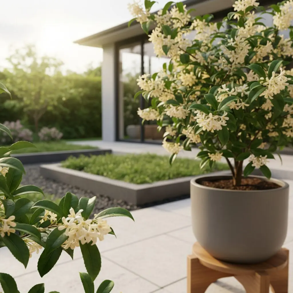 Ze względu na swój zapach, osmantus najlepiej prezentuje się jako soliter w pobliżu miejsc wypoczynku — tarasów, altan czy ławek. Można go również łączyć w kompozycje z innymi roślinami, takimi jak pachnące krzewy (np. jaśminowiec czy budleja). Jeśli planujesz założyć łąkę kwietną w innej części ogrodu, osmantus będzie dla niej doskonałym, zimozielonym tłem, które utrzyma strukturę ogrodu przez cały rok.