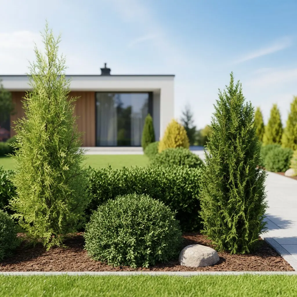 - Żywotnik wschodni — nieco mniej odporny na silne mrozy, ceniony za dekoracyjne, pionowo ustawione gałązki.