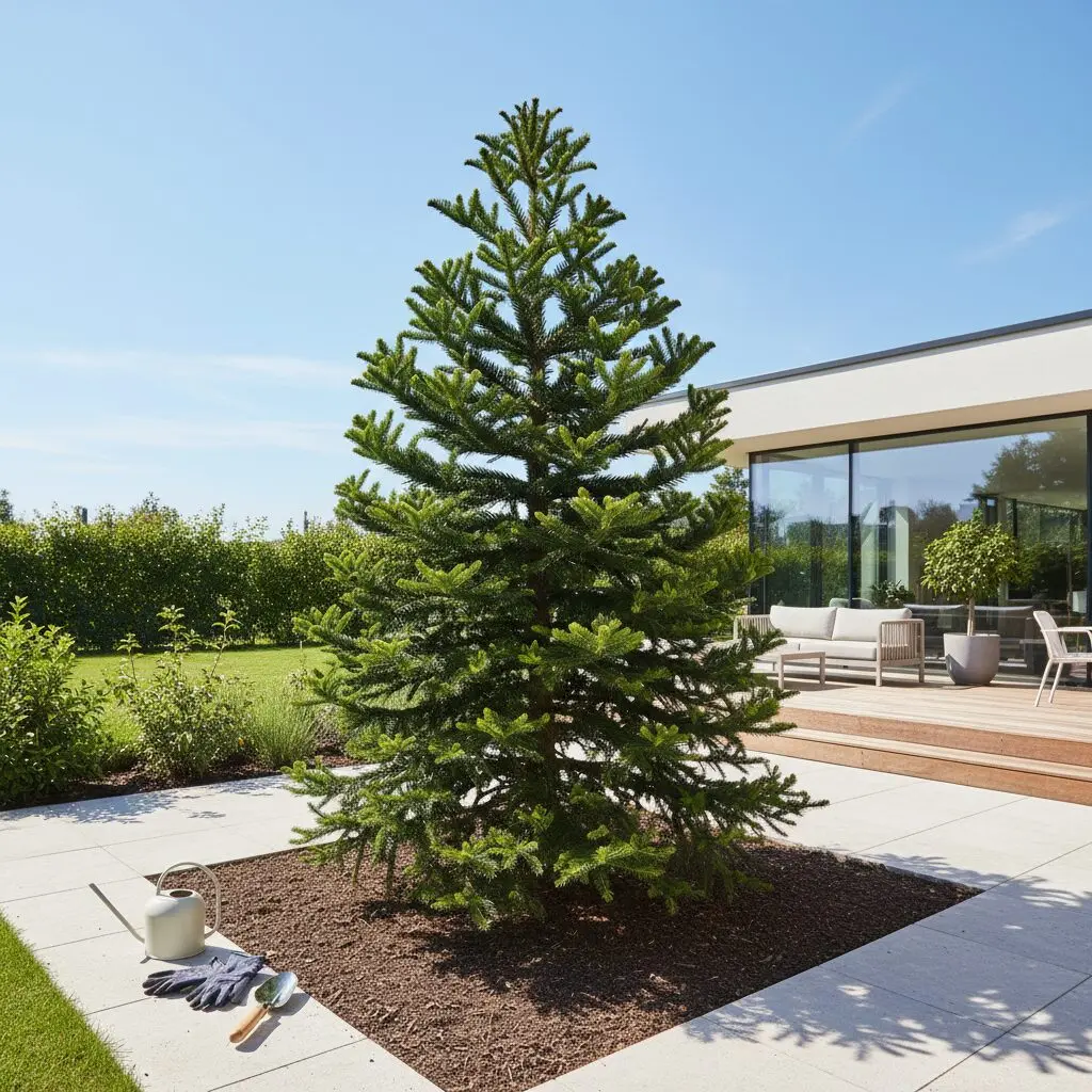 Araukaria najlepiej prezentuje się na tle jednolitej zieleni trawnika lub w otoczeniu roślin o drobniejszych liściach, co podkreśla jej monumentalny charakter. Warto zestawiać ją z: