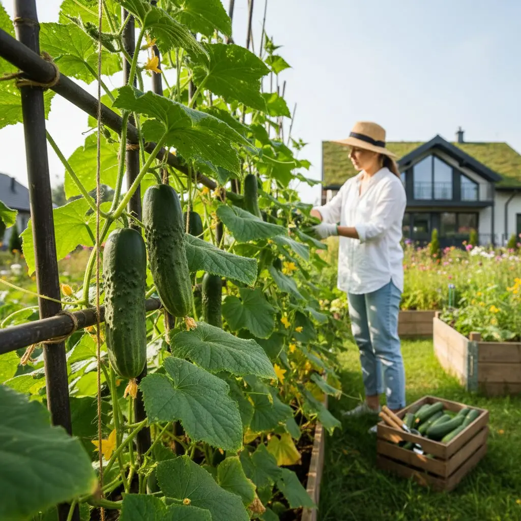 Podlewanie powinno być obfite, ale wykonywane letnią wodą — zimna woda z kranu może spowodować szok termiczny i zrzucanie zawiązków. W kwestii nawożenia, w trakcie kwitnienia i zawiązywania owoców, warto stosować nawozy bogate w potas i fosfor. Możesz skorzystać z gotowych mieszanek do warzyw lub naturalnych gnojówek, np. z pokrzywy. Szczegółowe instrukcje dotyczące opieki nad roślinami znajdziesz w poradniku Uprawa ogórków w ogrodzie i na balkonie. Poradnik dla każdego.