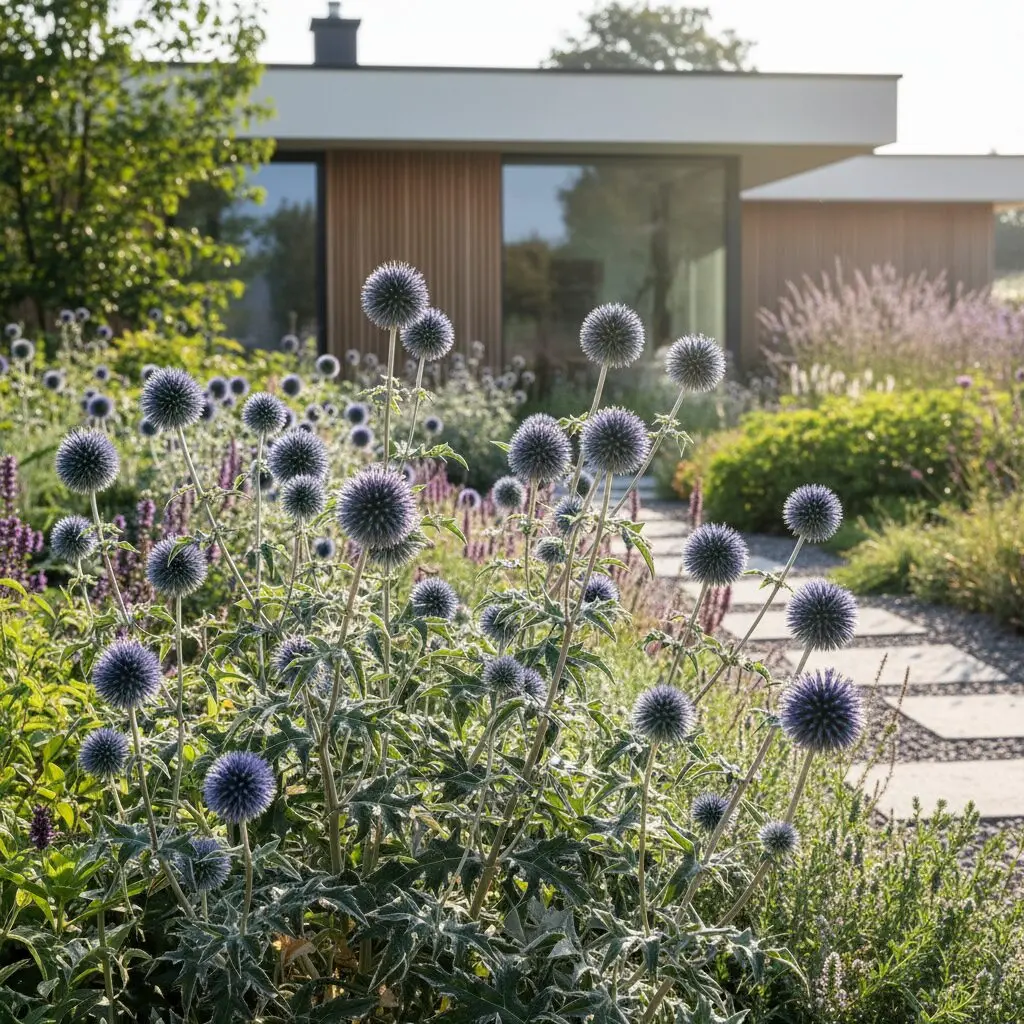 | Przegorzan banatyński (Echinops bannaticus) | 80-120 cm | Ciemnoniebieski | Suche bukiety, ogrody nowoczesne |