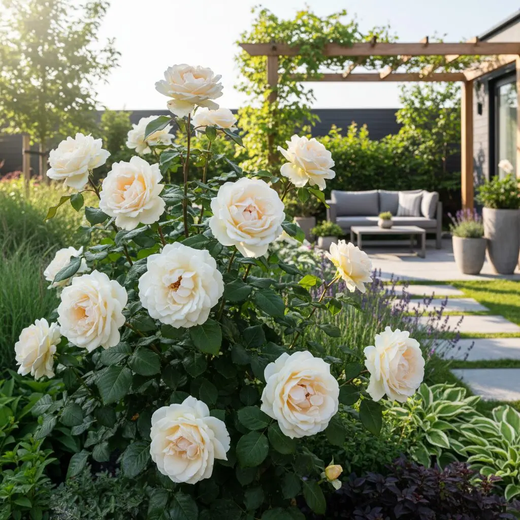 Tak, jej czysta, kremowa biel i sztywny, wyprostowany pokrój idealnie wpisują się w minimalistyczne założenia nowoczesnej architektury krajobrazu. Można ją sadzić w geometrycznych modułach, otaczać jasnym żwirem lub zestawiać z ciemnozielonymi żywopłotami z buka czy cisa. Jeśli szukasz innych inspiracji kolorystycznych, sprawdź jaki żółty krzew na wiosnę mógłby ożywić Twoją przestrzeń przed rozkwitem róż.