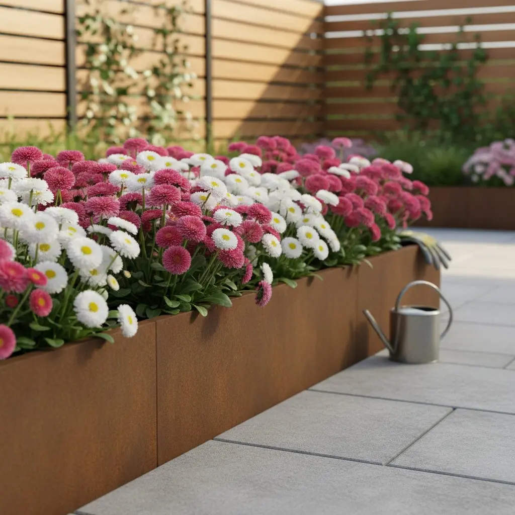 Z czym łączyć stokrotkę pomponette na rabatach?