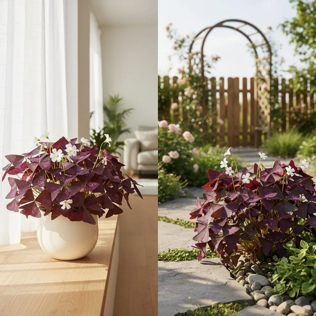 | Szczawik trójkątny (Oxalis triangularis) | Purpurowy / Fioletowy | Bladoróżowy / Biały | Roślina doniczkowa, tarasy |