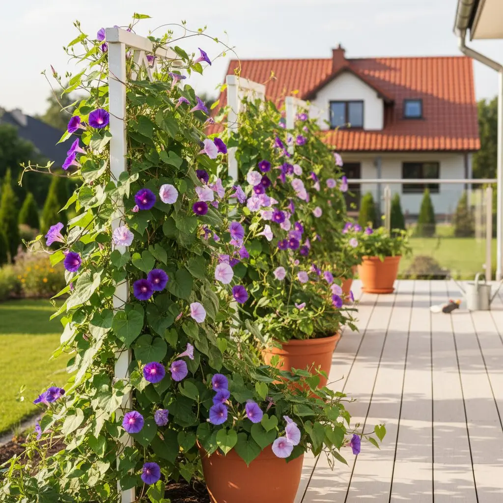 Pędy wilca można swobodnie przeplatać przez szczeble balustrady lub zamontować specjalną siatkę z tworzywa sztucznego. Ważne jest, aby kontrolować kierunek wzrostu na początku sezonu, delikatnie nakierowując młode pnącza na podpory. Dzięki temu uzyskasz zwartą i estetyczną ścianę zieleni. Warto też wiedzieć, że fioletowe i różowe kwiaty ogrodowe, do których zalicza się wilec, doskonale komponują się z nowoczesną architekturą balkonów.
