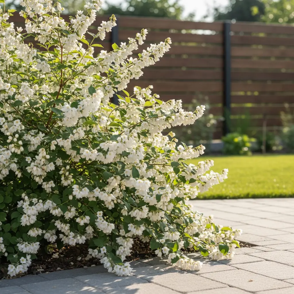 - Żylistek wysmukły (Deutzia gracilis) — niski krzew (do 1 m), idealny do małych ogrodów, o czysto białych kwiatach.
