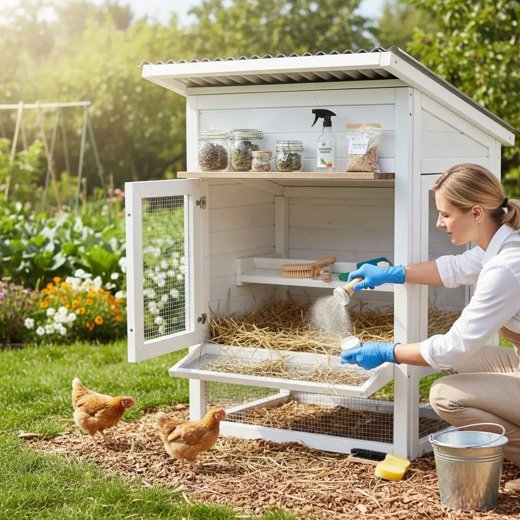 - Wapnowanie ścian — tradycyjne bielenie kurnika wapnem wysusza powierzchnie i zatyka drobne szczeliny.