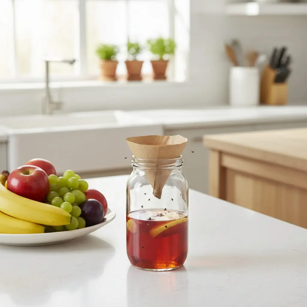 Najskuteczniejsza domowa pułapka na owocówki składa się z octu jabłkowego, płynu do naczyń oraz naczynia przykrytego folią spożywczą z otworami. To tanie i ekologiczne rozwiązanie, które wykorzystuje instynkt owadów — ocet wabi je zapachem, a detergent zmniejsza napięcie powierzchniowe cieczy, powodując ich utonięcie. Poniżej znajdziesz instrukcję wykonania najpopularniejszych wariantów.