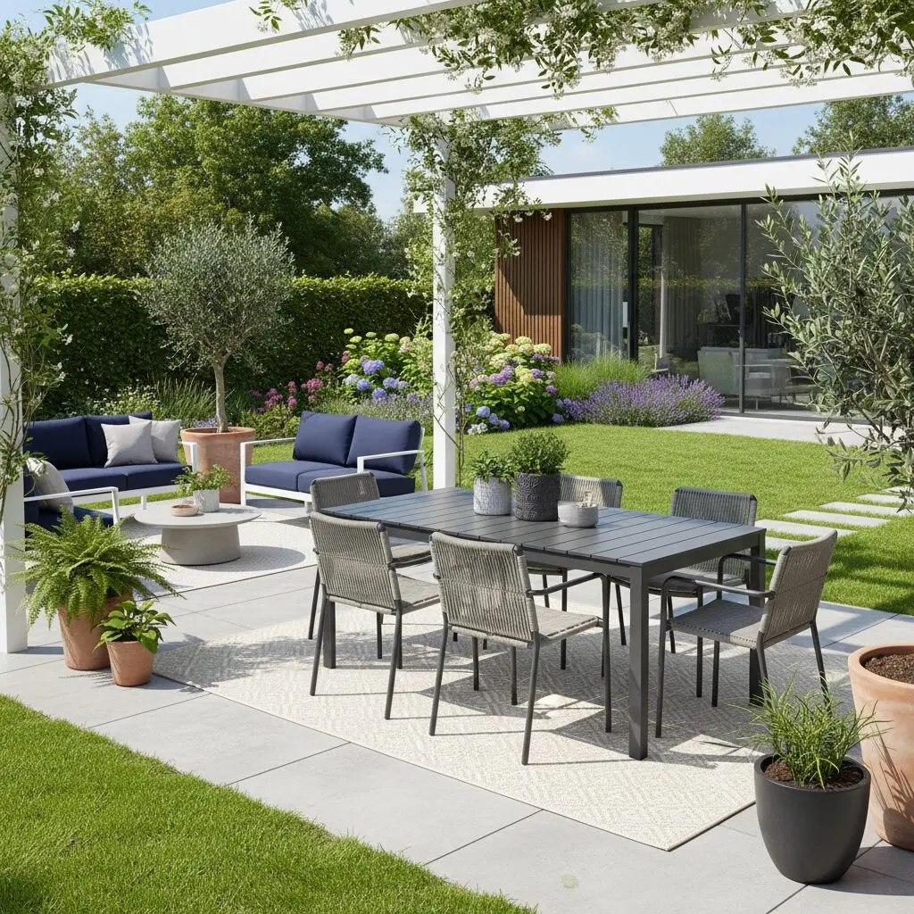 Warto również pomyśleć o dodatkach, które dopełnią aranżację. Jeśli Twoja przestrzeń wymaga osłony, sprawdź maty ogrodzeniowe, które stworzą intymne tło dla metalowego kompletu wypoczynkowego. Metal świetnie kontrastuje z zielenią roślin oraz naturalną strukturą osłon, tworząc wyważony balans między surowością a przytulnością.